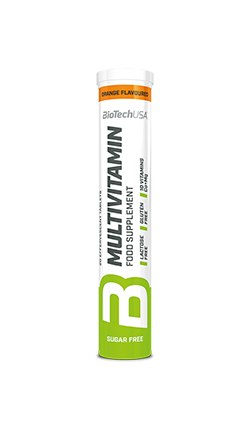 ОПИСАНИЕ ПОЧЕМУ МЫ РЕКОМЕНДУЕМ ШИПУЧУЮ ТАБЛЕТКУ MULTIVITAMIN ? Содержит: 10 видов витаминов 2 вида минералов без сахара без лактоза без глютена КОМПЛЕКСНЫЙ СОСТАВ, КОМПЛЕКСНЫЕ ФУНКЦИИ Окажите поддержку своему организму и взбодрите повседневную жизнь шипучей таблеткой Multivitamin от BioTechUSA, содержащей 10 витаминов и 2 минерала. Благодаря своему комплексному составу, таблетка может стать идеальным выбором, если помимо активного образа жизни и сбалансированного питания, вы пожелаете добавить ещё что-нибудь для достижения оптимального функционирования вашего организма. ЭНЕРГИЯ Содержашиеся в продукте ниацин (витамин В3), рибофлавин (витамин В2), витамин В6, тиамин (витамин В1), биотин (витамин В7), витамин С, кальций и магний участвуют в процессах нормального энергетического метаболизма. Кроме того, витамин С, ниацин, рибофлавин, витамин В6, витамин В12 и магний способствуют снижению утомляемости и усталости. КОСТИ Содержание витаминов С и D, а также кальция и магния в продукте способствует поддержанию здоровой нормальной структуры костей. МЫШЦЫ Содержащиеся в продукте кальций и магний поддерживают нормальную деятельность мышц, а витамин D способствует поддержанию здоровой функции мышц. ИММУННАЯ СИСТЕМА Имеющиеся в составе продукта витамины В6, В12, С и D способствуют нормальному функционированию иммунной системы. АНТИОКСИДАНТНЫЙ ЭФФЕКТ Содержащиеся в составе продукта витамин С и рибофлавин (витамин В2) способствуют защите клеток от окислительного стресса.
