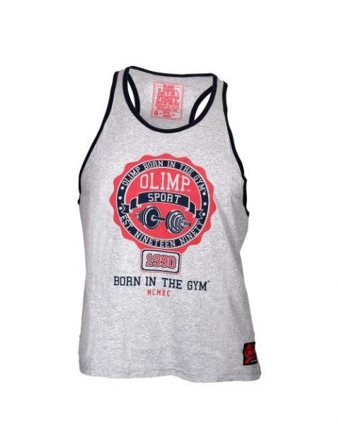 Майка на тонких лямках с большим принтом на груди и контрастной отделкой.
